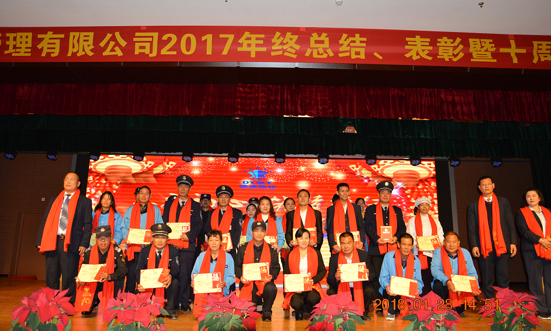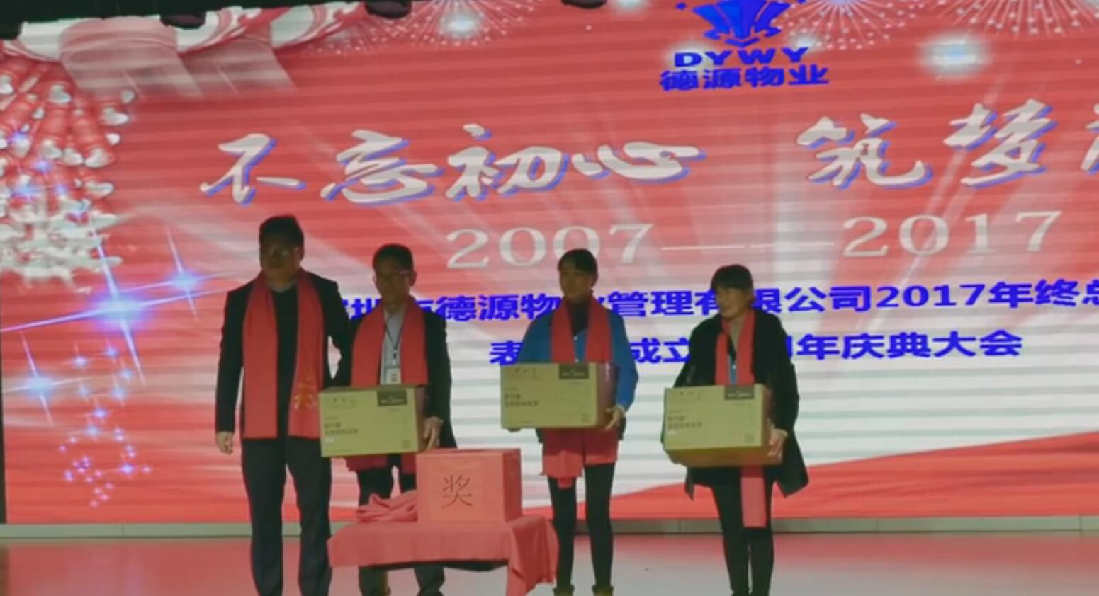 1月(yuè)28日(rì),德源物(wù)業(yè)2017年(×♥☆nián)終總結、表彰暨成立十周年(nián)慶典大(dà)會(huì)隆重舉行(xínβg)。德源物(wù)業(yè)董事(shì)長(cháng)杜波先生(s→∞σhēng)與幾百德源人(rén)在深圳坪山(shā←♠n)歡聚一(yī)堂,共同度過了(le)這(zhè)個(gè)歡樂(yuδ₽®è)而祥和(hé)的(de)日(rì)子(zǐ)。